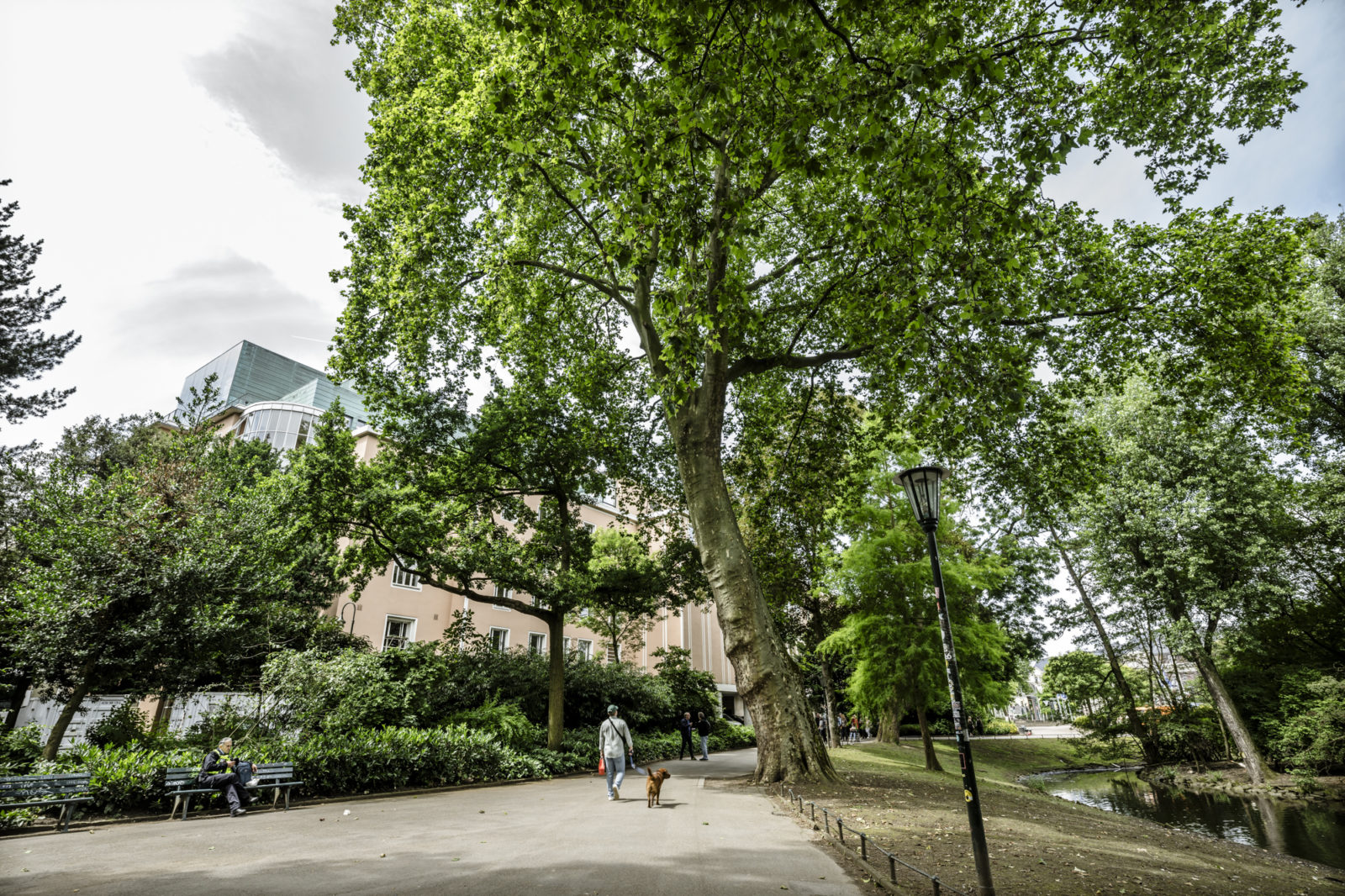 Um besser zu verstehen, was im Hofgarten passiert wäre, habe ich mich vor wenigen Tagen vor Ort mit Jürgen Fischer getroffen. Er ist Ratsherr der Grünen und war vor seiner Pensionierung und seiner Wahl in den Stadtrat Referent im Umweltdezernat. Das heißt, er betrachtet das Ganze nicht nur politisch, sondern auch mit seinem Wissen aus dem früheren Job. Die folgenden Punkte haben wir im Schatten der Weyhe-Bäume (zwei ahornblättrige Platanen und ein japanischer Schnurbaum) diskutiert: