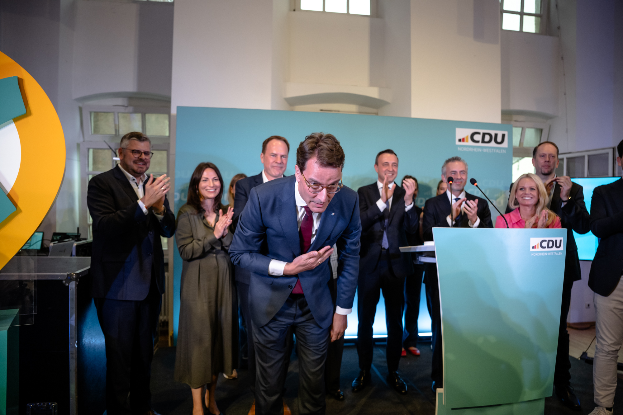 Bei den Kommunalwahlen in Düsseldorf spielte sich 2025 genau um 18 Uhr eine der entscheidenden Szenen ab. Der WDR sendete eine Prognose für ganz NRW. Bei der Wahlparty der CDU gab es Jubel für das eigene Ergebnis und großen Jubel für das landesweit schwache Ergebnis der Grünen.