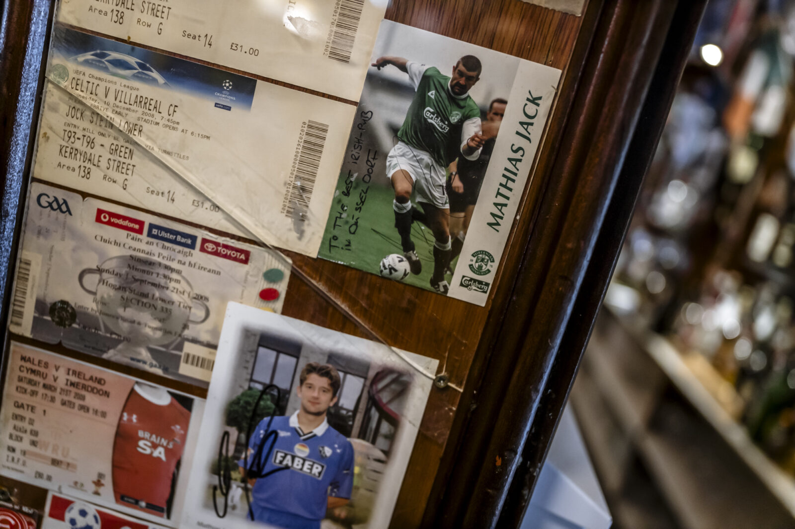 Die fast 80.000 Zuschauer in Berlin, die Zeit in Schottland und Island. Alles besondere Erlebnisse. Doch am detailreichsten erinnert sich der Mann, der heute mit seinem blau-weiß gestreiften Hemd und der schwarzen Mütze über den herausstehenden Locken ausnahmsweise vor der Theke sitzt, an diesen einen verregneten Sonntag vor 22 Jahren. Er zeigt dabei in die Ecke des Raumes, an den Tisch, der seit Corona die Nummer neun trägt. „Es waren sieben Leute hier, da haben wir uns hingesetzt, das Spiel geguckt. Außer uns waren drei Hibs- und zwei Rangers-Fans da.“ Zur Halbzeit habe sich einer von ihnen umgedreht und gefragt, wer denn gewinnen soll. „Ich sage: Hibs, Er sagt: „I knew it. You are Mathias Jack.“ Dabei spricht er seinen ganzen Namen so aus, wie es die Leute in Edinburgh eben getan haben: Mae-tai-as Dschaeck.